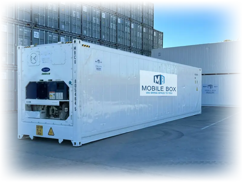 Mobile Box provides convenient refrigerated container rentals—also known in the industry as reefers—perfect for temporary, seasonal, or emergency storage, delivered directly to your location. Our cold storage containers offer an efficient and flexible solution for preserving perishable goods, especially when traditional refrigeration options are inadequate or unavailable. Whether you need additional cold storage for peak seasons, backup refrigeration during emergencies, or a mobile cooling solution for events, Mobile Box has you covered.