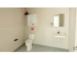 Our 40-foot ground-level container office provides a versatile temporary workspace and features a fully self-contained, ADA-compliant restroom. It's a perfect solution for businesses or projects requiring a larger, more permanent-feeling workspace.