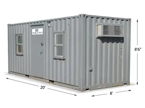 All container offices rented from Mobile Box have ground-level access for easy entry and exit. They are constructed with weatherproof materials that withstand harsh elements and are made from heavy-duty 16-gauge steel for enhanced durability. These offices feature climate control for added comfort and are secure and watertight to prevent unauthorized access and water infiltration.